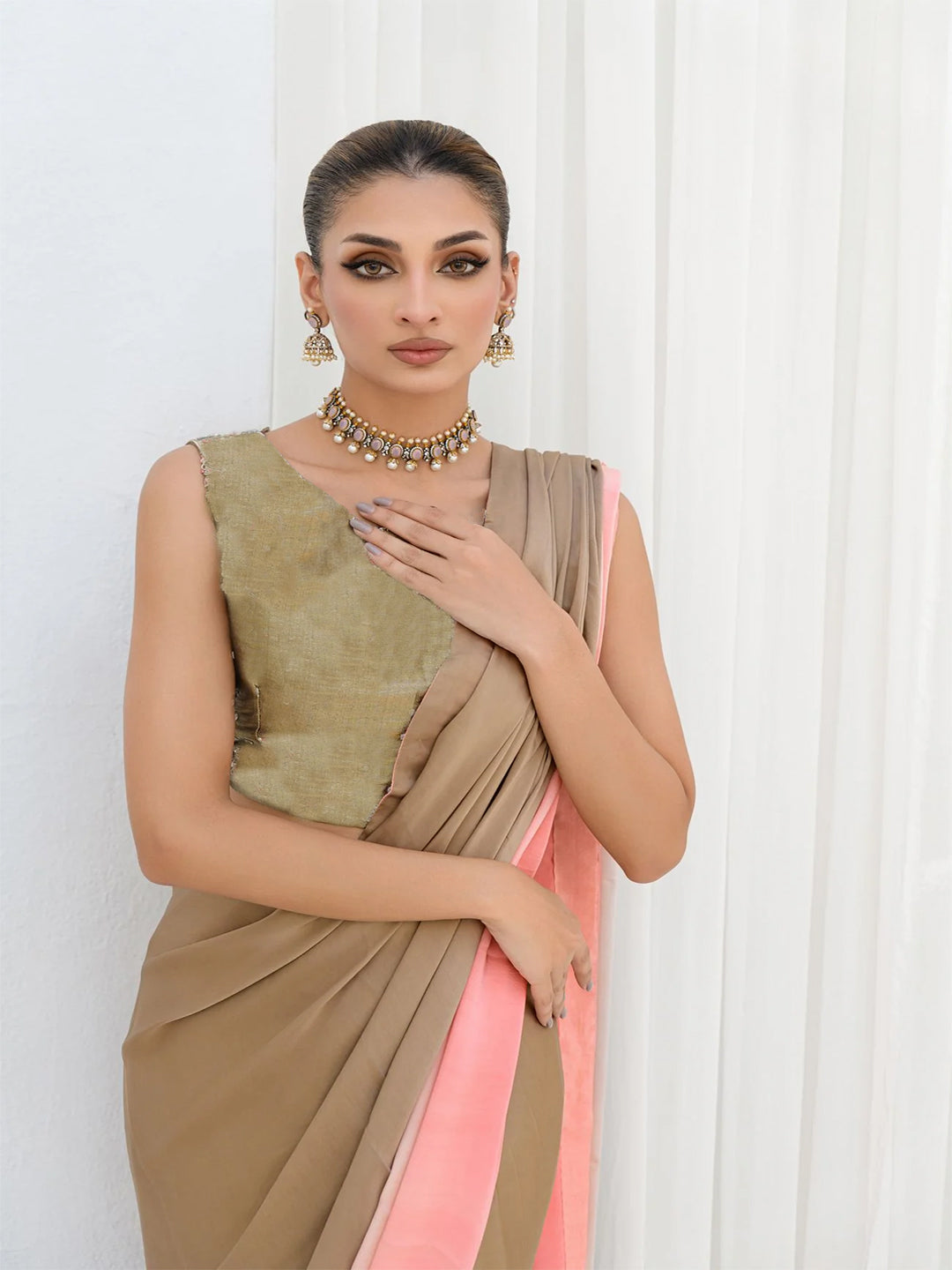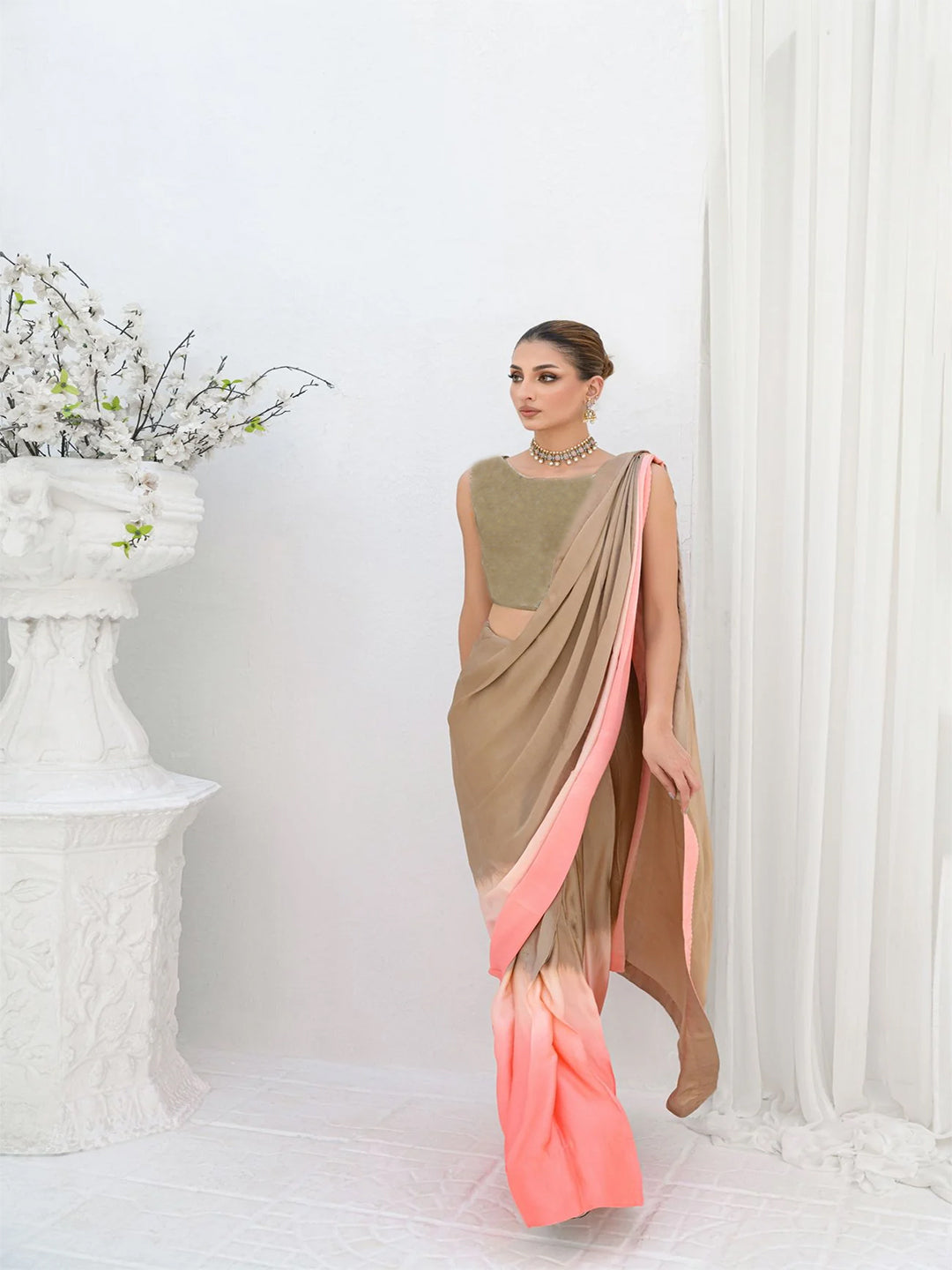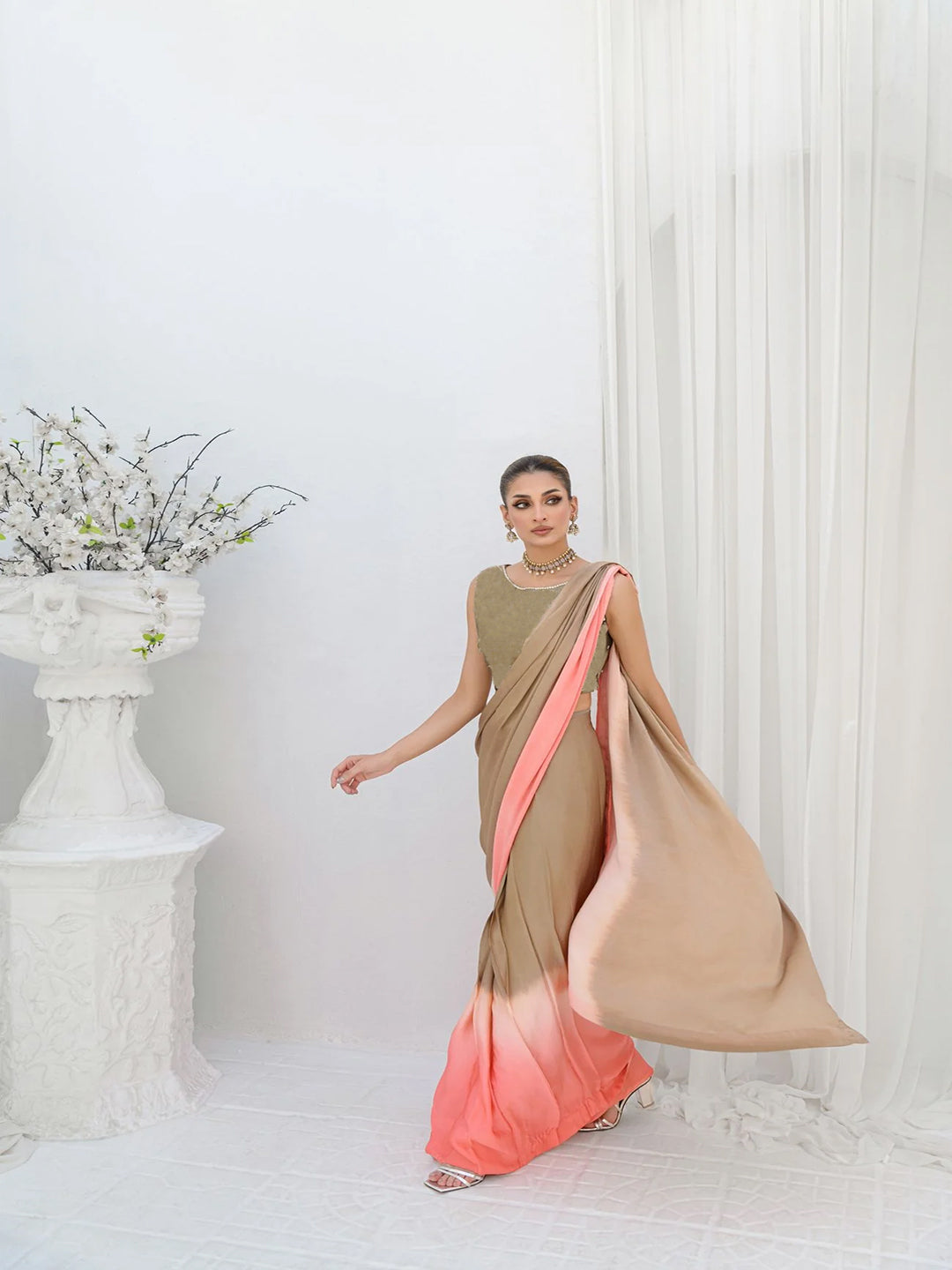 Beige Coral Silk Blend Saree – Contemporary Drape Style Party Wear