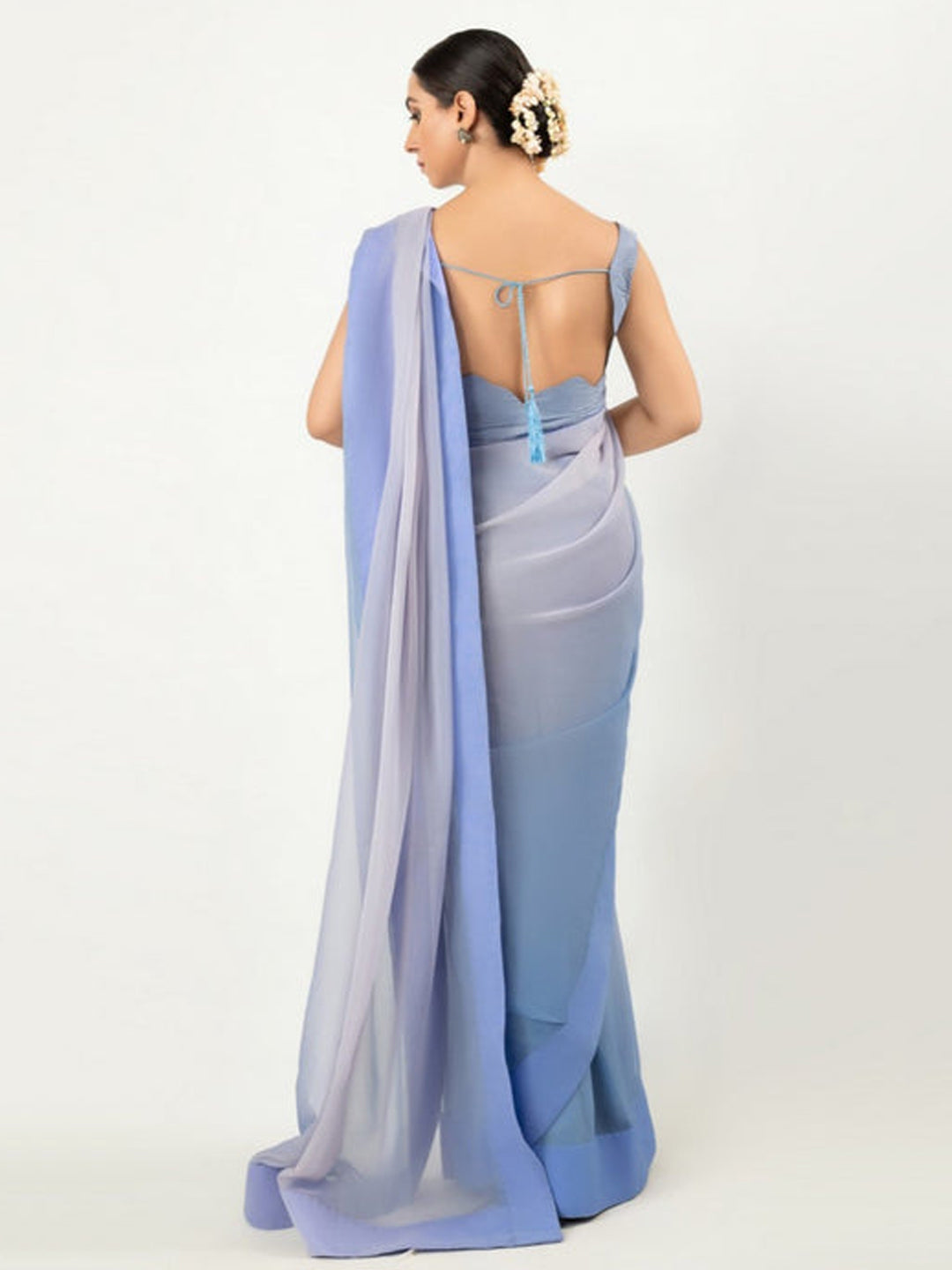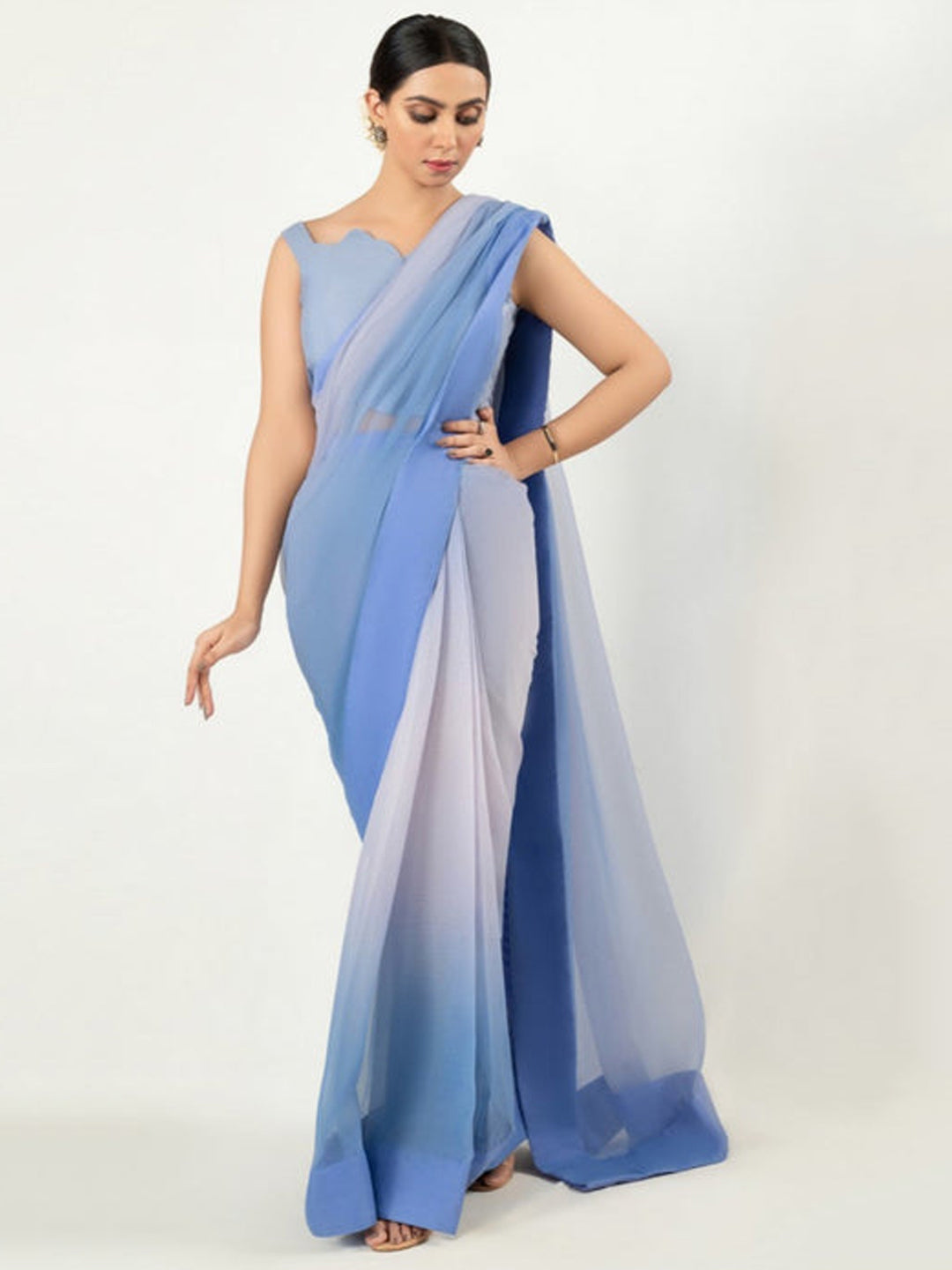 Blue Gradient Ombre Saree – Elegant Party Wear with Flowing Drape