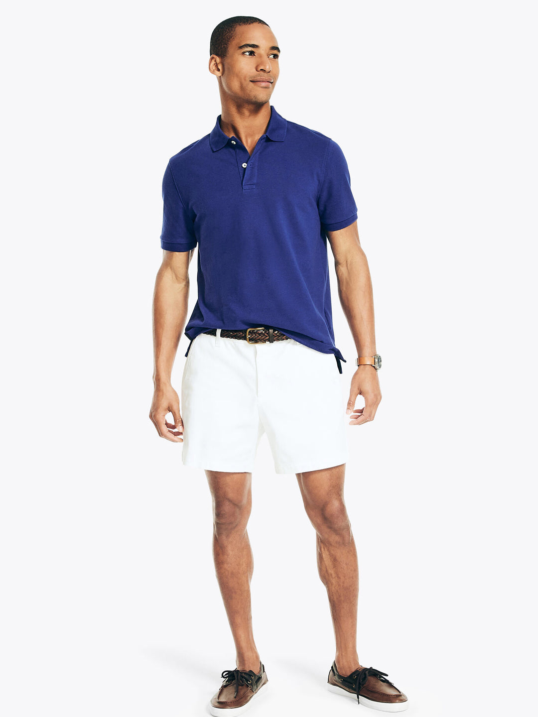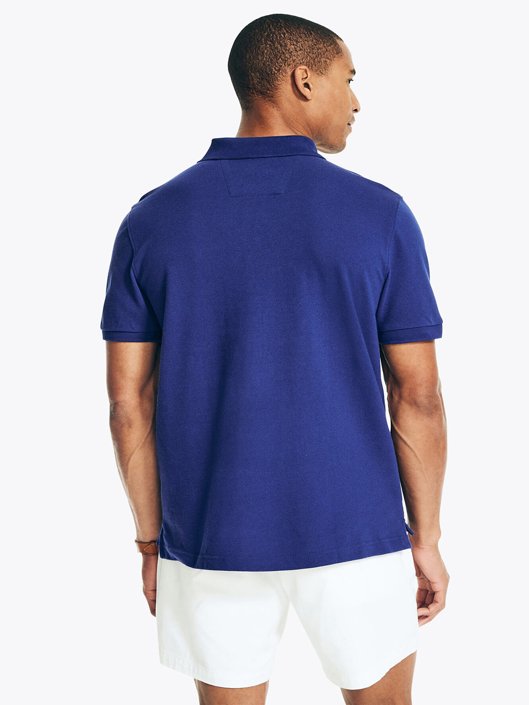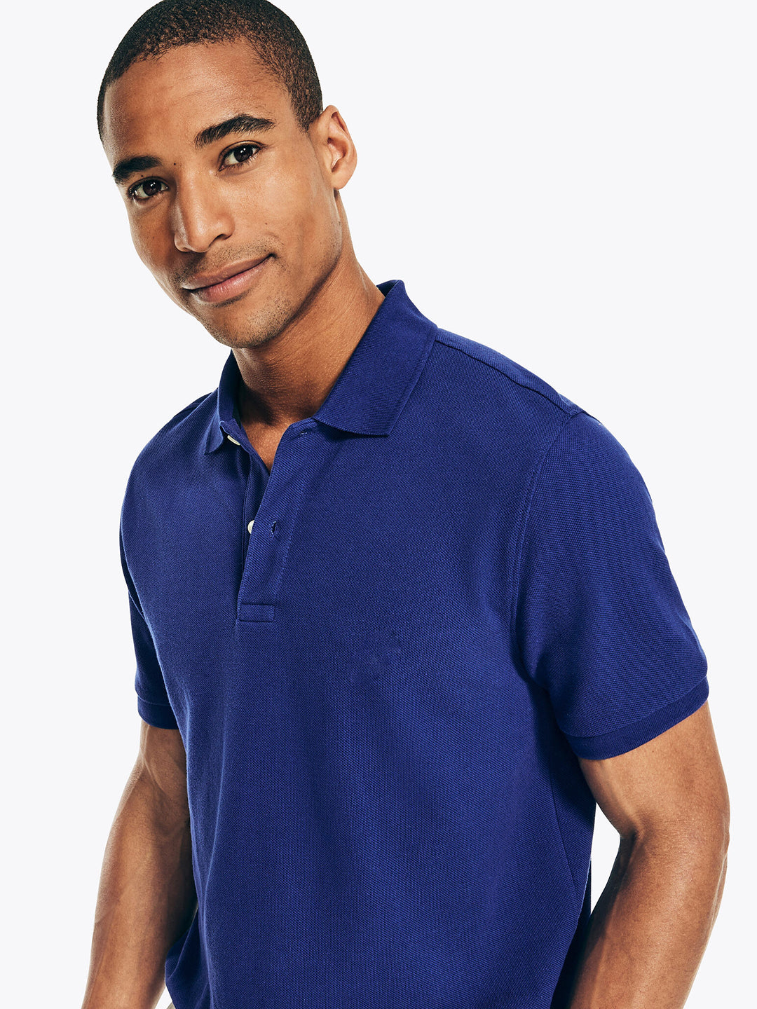 - Classic polo collar with button placket