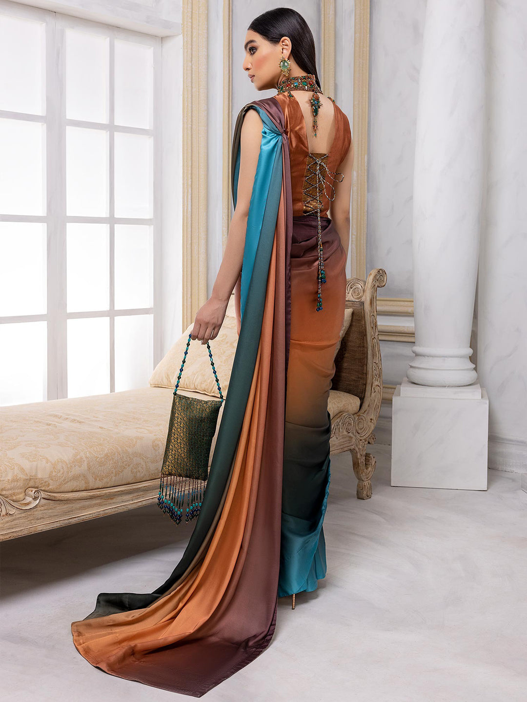 Elegant Gradient Satin Silk Saree - Multicolor Designer Drape