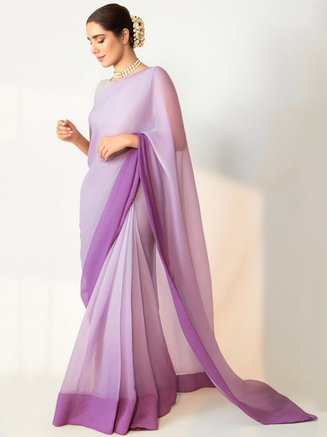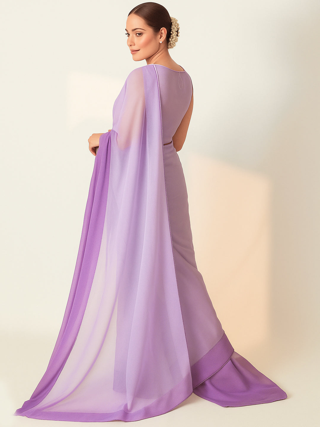 Elegant Lavender & Purple Ombre Silk Blend Saree – Ravelia Lux Exclusive