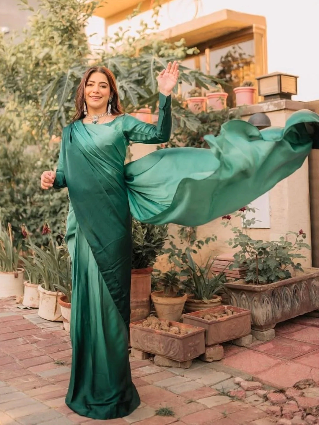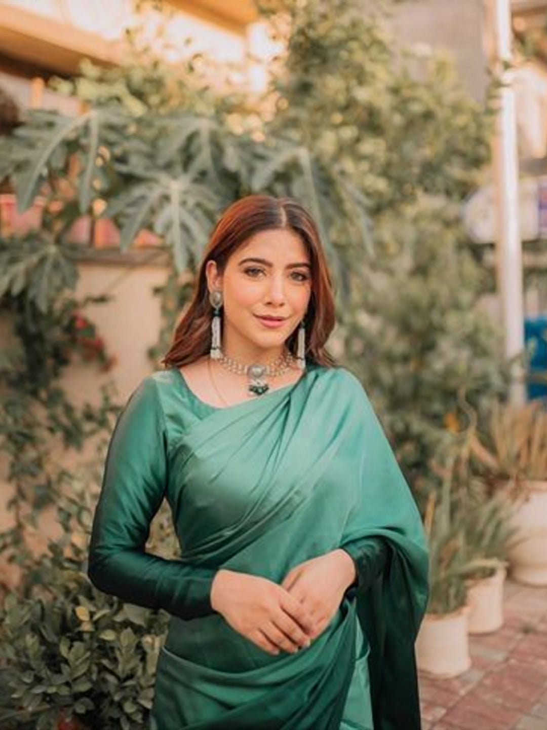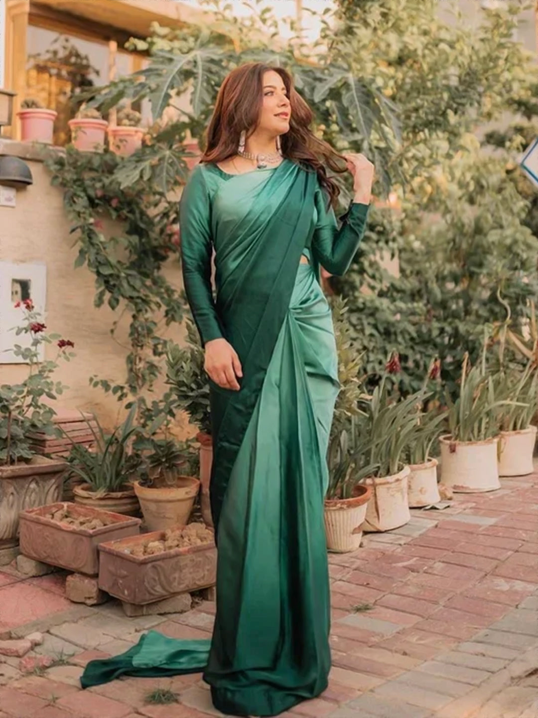 Experience unparalleled elegance with this breathtaking emerald green satin silk saree that radiates luxury and sophistication. This stunning solid-colored piece showcases the rich, lustrous beauty of premium satin silk in a captivating emerald green shade that's both timeless and contemporary.