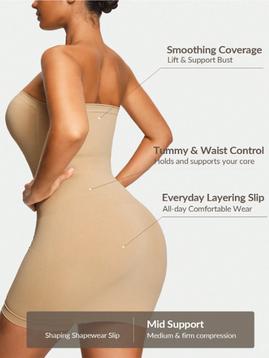 - Tummy & Waist Control: Advanced compression smooths and cinches your midsection