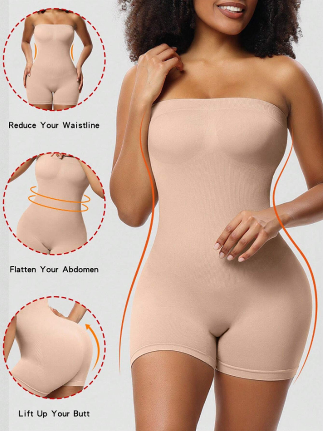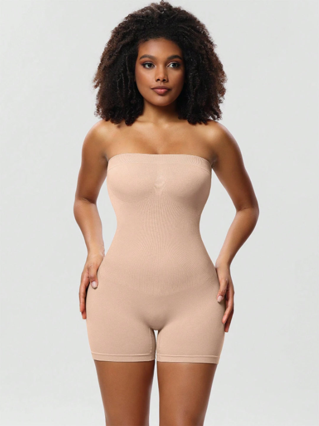 Transform your silhouette with our nude strapless bodysuit featuring targeted shaping zones. Crafted from premium spandex fabric, this revolutionary shapewear provides comprehensive body contouring with waistline reduction, abdomen flattening, and butt lifting - all seamlessly integrated into one invisible foundation garment.