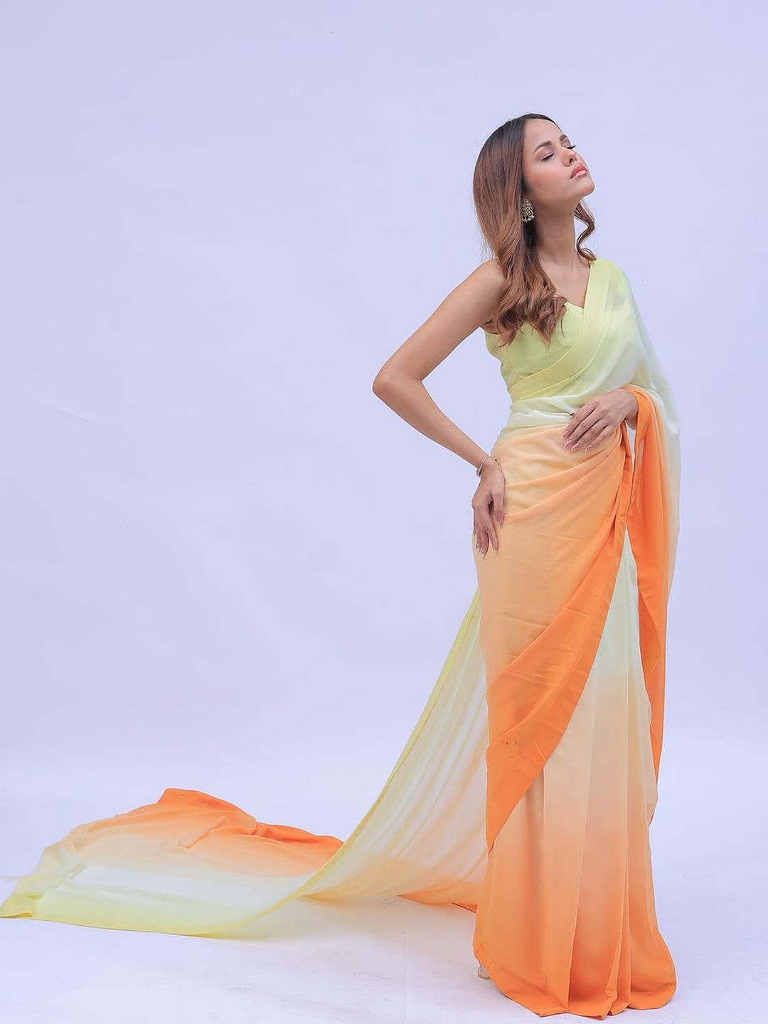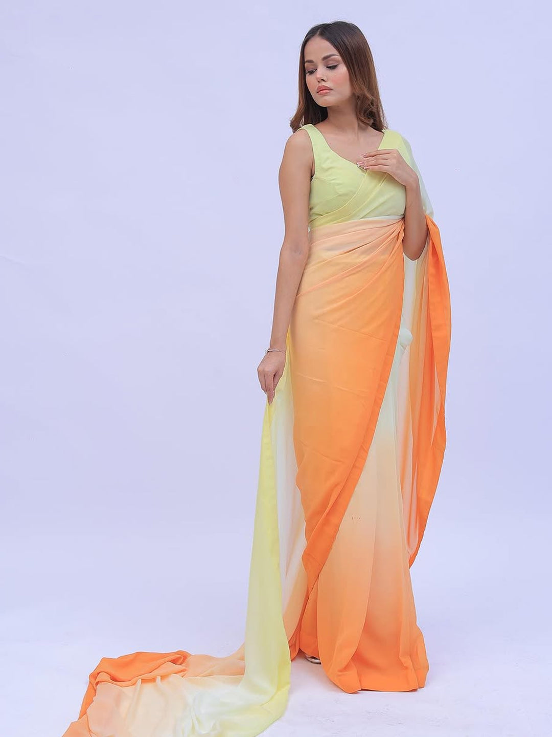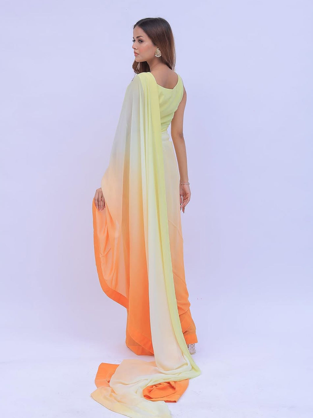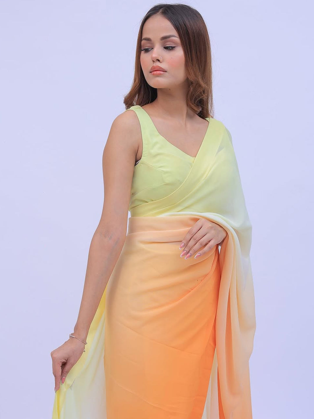 Radiant Yellow to Orange Ombre Saree - Sunshine Meets Golden Hour